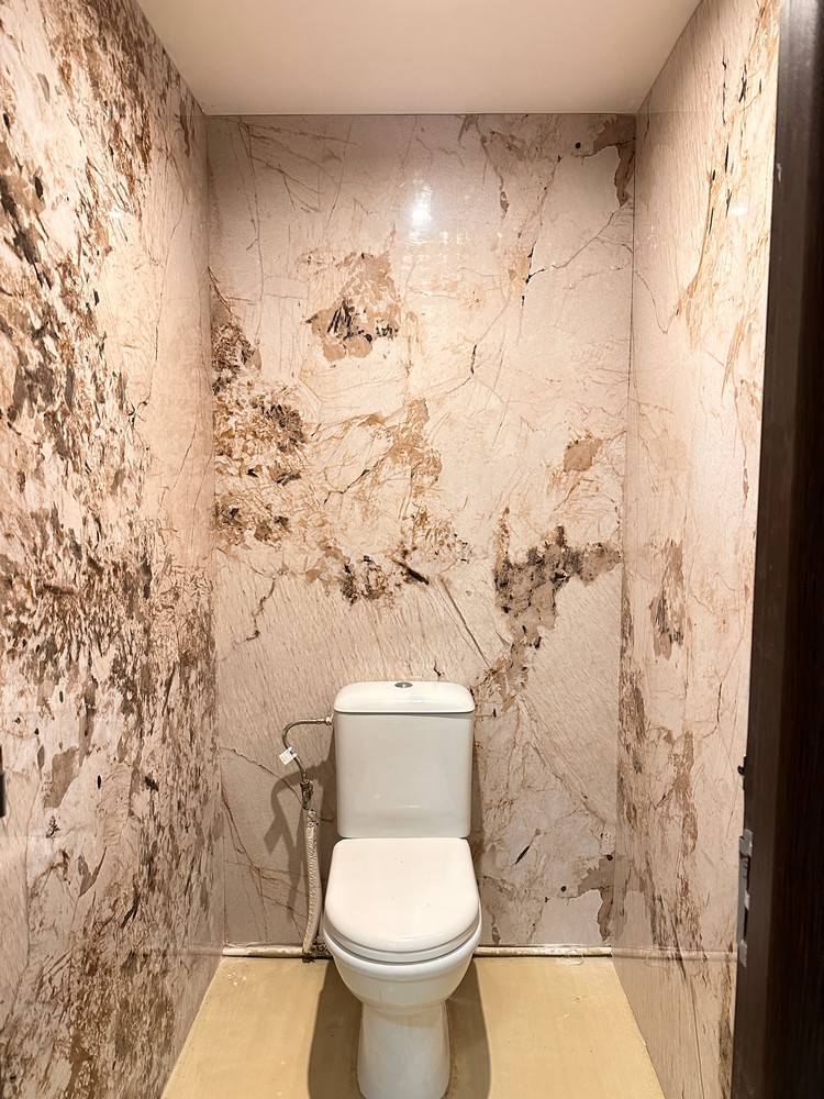 Και τα δύο μπάνια, καθώς και ο προθάλαμός τους, ολοκληρώθηκαν με τα PVC Light ΕΙΔ0000018 και Rich Brown Panels ΕΙΔ0000017, αναδεικνύοντας τις εισόδους με μια ζεστή και εκλεπτυσμένη αισθητική. Στον προθάλαμο, ένας καθρέφτης πλαισιωμένος με Black Matte Semicircle ΕΙΔ0000023 αποτελεί το κεντρικό στοιχείο του χώρου, δημιουργώντας ένα εντυπωσιακό εστιακό σημείο και ενισχύοντας την αίσθηση βάθους και φινέτσας.