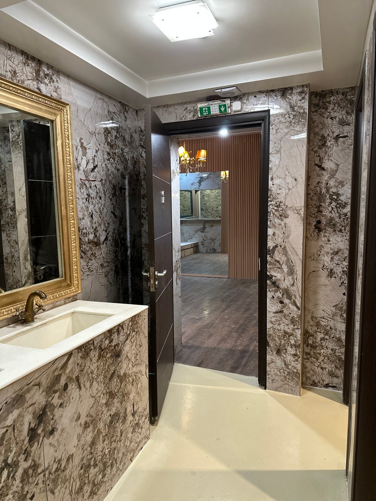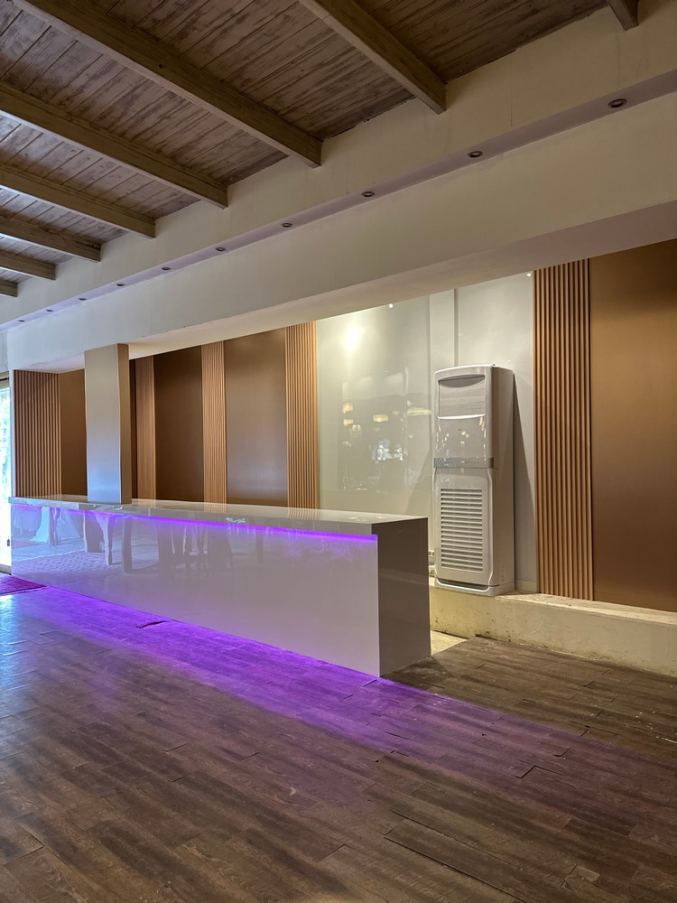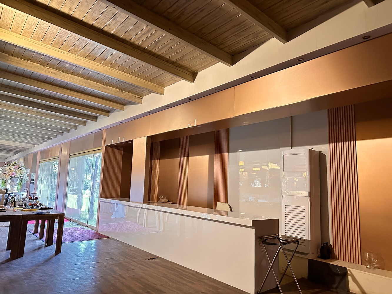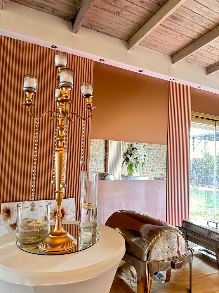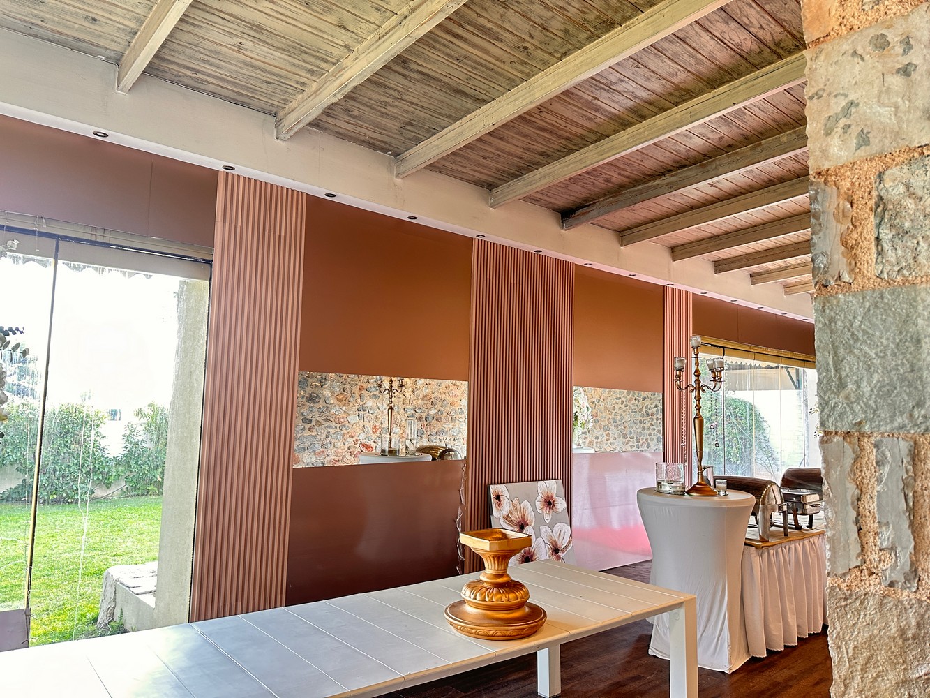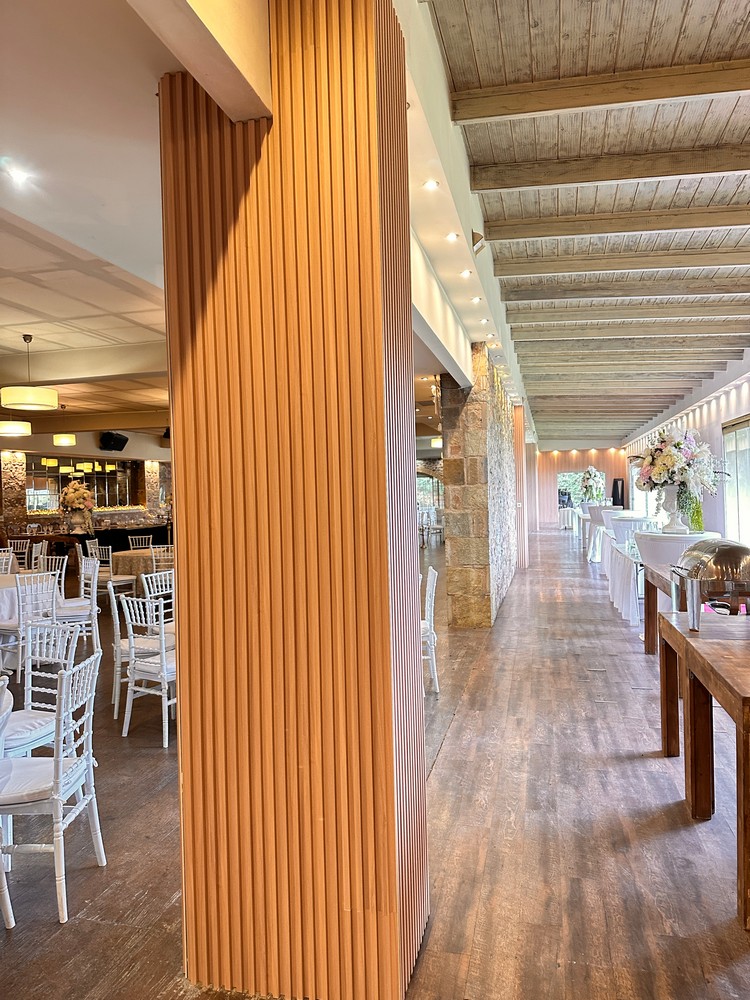 Το αποτέλεσμα είναι ένας αρμονικός συνδυασμός υφών, υλικών και λεπτομερειών σχεδιασμού που αποπνέει σύγχρονη πολυτέλεια και λειτουργική αισθητική σε κάθε γωνιά αυτού του χώρου εκδηλώσεων.